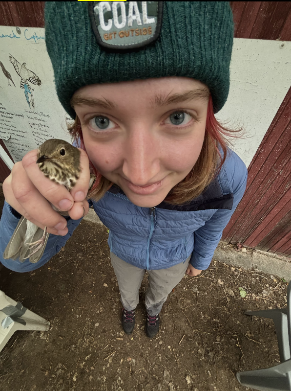 Another one of my favorite experiences with BCR was bird banding at Chico Basin Ranch in Pueblo County. We woke up bright and early to set up passive mist nets in a wooded area of the ranch. We would check the nets periodically for caught birds. Then, we would carefully remove the birds from the nets and place them into bird bags. At the banding station, we removed the birds from the bags, identified their species, weighed them, banded them, checked their fat levels, and then released them. It was such a unique experience to see the birds up close and be able to handle and hold them. It made me feel much more connected to the work I was doing with birds since I usually only interact with them at a distance.