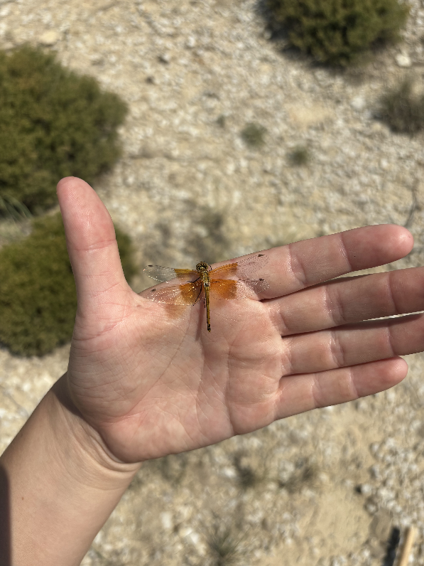After my time with BCR, I joined CNHP entomologists Tristan Kubik and Nathan Comai on the Comanche National Grasslands in Southeastern Colorado. For this hitch, our main agenda was to get an idea of the insect diversity in the area. We did this by going to locations that were expected to have a high diversity of insects (such as in drainages), and collected one or two of each species we came across. This hitch didn’t have a strict protocol, and I like how that left us with a lot of freedom to just explore. We came across many types of grasshoppers, bees, wasps, cicadas, robber flies, dragonflies, stick bugs, and beetles. We also found various insect species that had evolved to mimic the appearance of other, more dangerous species such as wasps and bees. On flatter terrain, we came across hundreds of tarantula burrows. We were able to coax a few out of their burrows and capture them to get a closer look. I had very interesting conversations with Tristan and Nathan about insects and entomology as a whole. Tristan explained to me the incredible biodiversity of insects and how few entomologists there are compared to the high number of species. This makes studying specific species challenging because there are just too many of them to get detailed and accurate descriptions of many species. There is especially little data on insect behavior since most studies consist of collecting and killing insects in the field to identify them later in a lab. Because of this, Tristan had us do