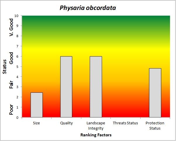 ![]() Summary results of an analysis of the status of Physaria obcordata based on several ranking factors. This species was concluded to be "weakly conserved”. From Rondeau et al. 2011. |