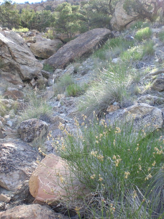 Gullied hills, washes, and talus under cliffs; in seleniferous clayey, silty, or sandy soils. (Spackman et al. 1997). Asociated plant community: Pinus edulis, Juniperus osteosperma, Cercocarpus montanus. Additional associated plant species: Cercocarpus montanus, Chrysothamnus vicidiflorus, Atriplex confertifolia, Purshia tridentata, P. stansburiana, Sarcobatus vermiculatus, Artemisia ludoviciana, Bouteloua curtipendula, Opuntia phaeocantha, Elymus elymoides, Petradaria pumila, Physaria acutifolia, Senecio multilobatus, Erysimum capitatum, Hymenopappus filifolius, Haplopappus armerioides, Lepidium montanum, Oryzopsis hymenoides, Astragalus lonchocarpus, Chaetopappa ericoides, Poa secunda, Hilaria jamesii, Castilleja chromosa, Astragalus flavus, Erigeron pumilus, Hymenoxys richardsonii, H. acaulis, Senecio multilobatus, Castilleja seabrida, C. linarifolia, Pediomelum megalanthum, Gutierrezia sarothrae, Astragalus wetherillii, Schoenocrambe linifolia, Townsendia incana, Astragalus eastwoodiae, Heterotheca villosa.