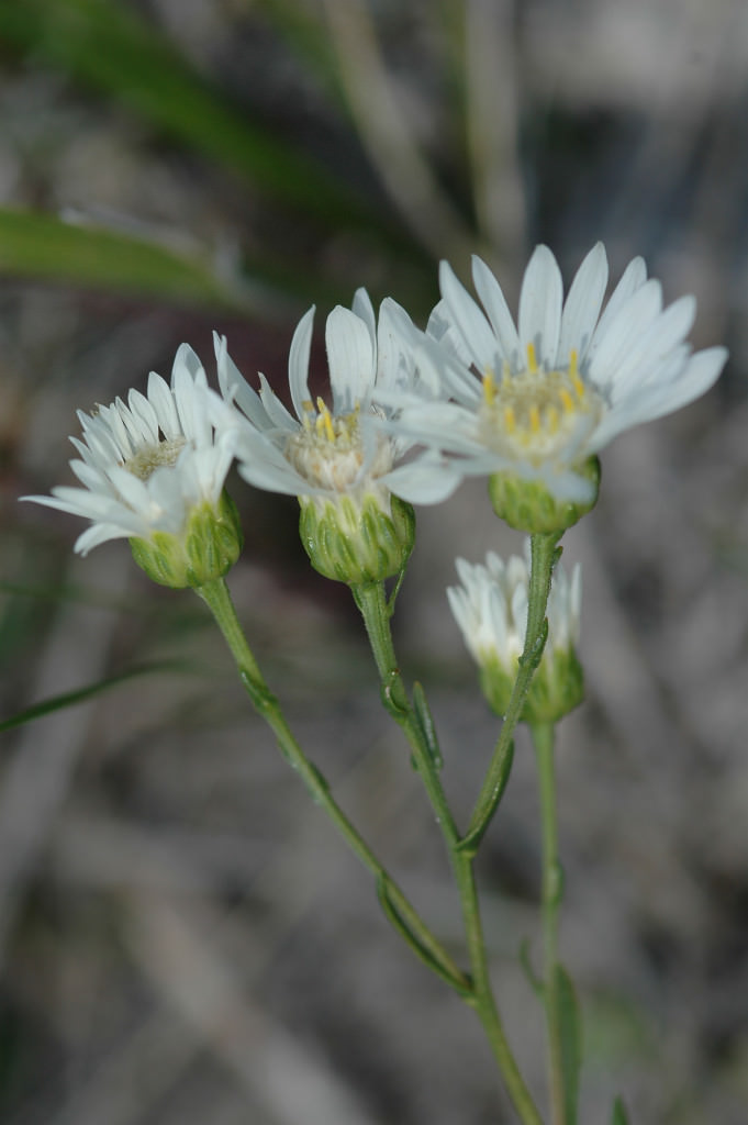 Differs from Solidago species in having larger inflorescences and white to pale yellow flowers rather than yellow ones. Distinguished from white flowered, linear- lanceolate leaved Aster species (A. junciformis, A. hesperium, A. porteri, and A. ascendens = Virgulaster ascendens) in having a prominent midrib on the phyllaries and at least some of the pappus bristles enlarged at the apex (Spackman et al. 1997).
