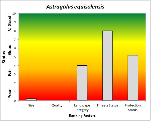 ![]() Summary results of an analysis of the status of Astragalus equisolensis based on several ranking factors. This species was concluded to be Moderately Conserved. From Rondeau et al. 2011. |